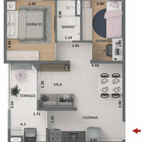 34m² e 37m² - 2 dorms | 42m² - 2 dorms com sacada | 44m² - 2 dorms com sacada e suíte