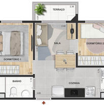32m² e 34m² - 2 dorms | 37m², 38m² e 42m² - 2 dorms com terraço | 45m² e 47m² - 2 dorms com terraço e suíte